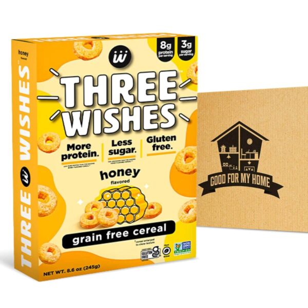Gluten Free Cereal Bundle. Includes One- 8.6 Oz Three Wishes Honey Cereal in a Good For My Home Box. Three Wishes Cereal is Protein Rich & Gluten Free 3 Wishes Cereal is a Great Breakfast Cereal