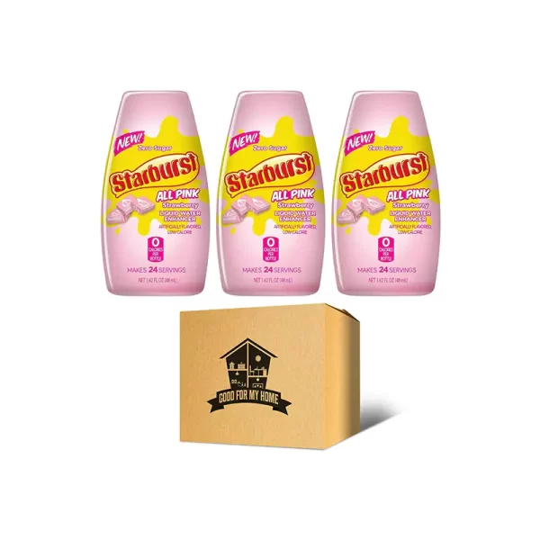 • This Sugar Free Strawberry Liquid Water Enhancer bundle includes three bottles of Starberst All Pink Strawberry Flavoring For Water in a Good For My Home Box.