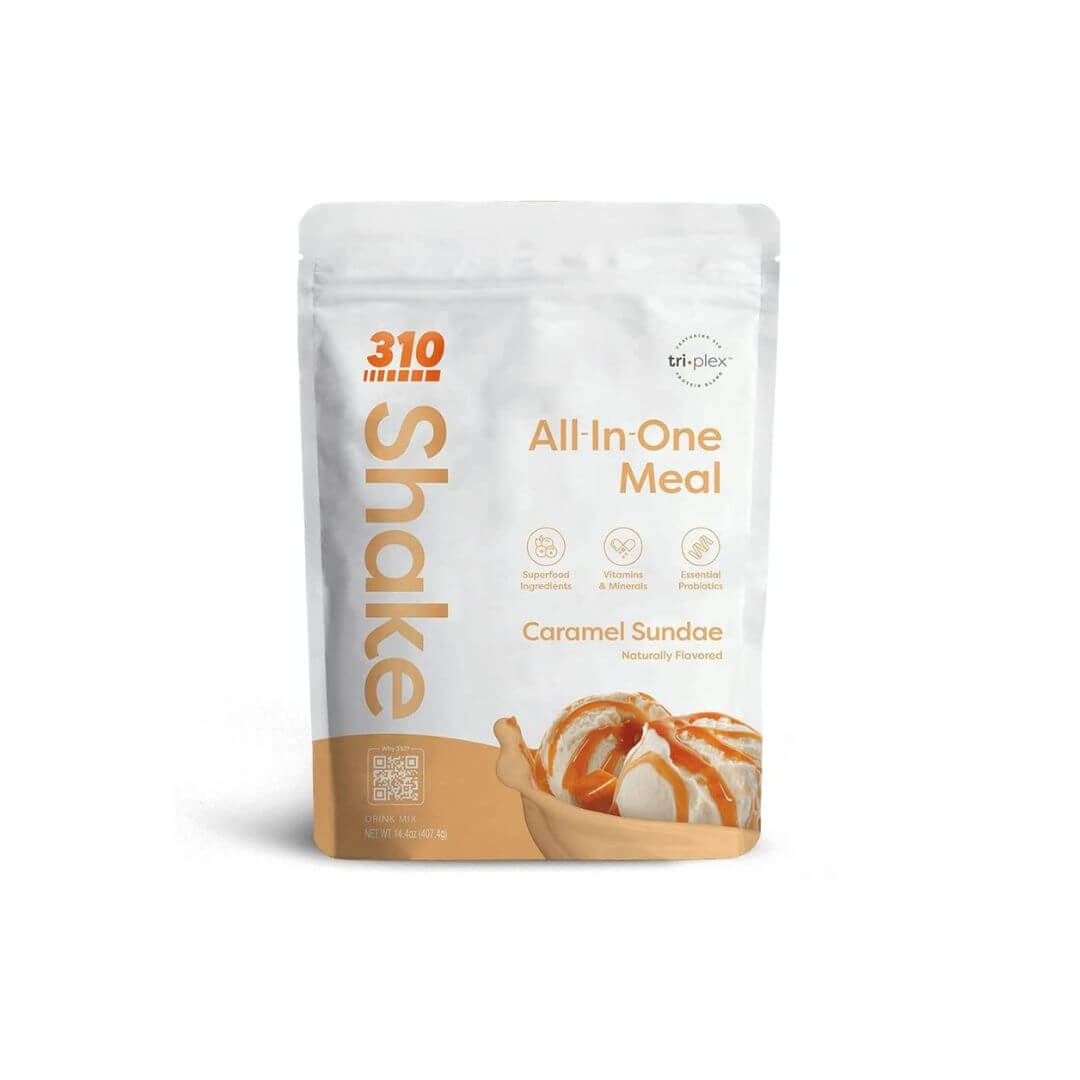 310 Nutrition – All In One Meal Replacement Shake – Fiber Rich Vegan Superfood Blend – Natural Sweeteners – Low Carb Shake, Keto & Paleo Friendly – Gluten Free – 26 Essential Vitamins & Minerals (Caramel Sundae, 14 Servings)