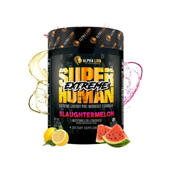 ALPHA LION Superhuman Extreme, Extreme Energy Pre-Workout Formula, Intense, Sustained Energy and Focus, Elevated Nitric Oxide, Maximum Pumps & Nutrient Delivery (21 Servings, Slaughtermelon)