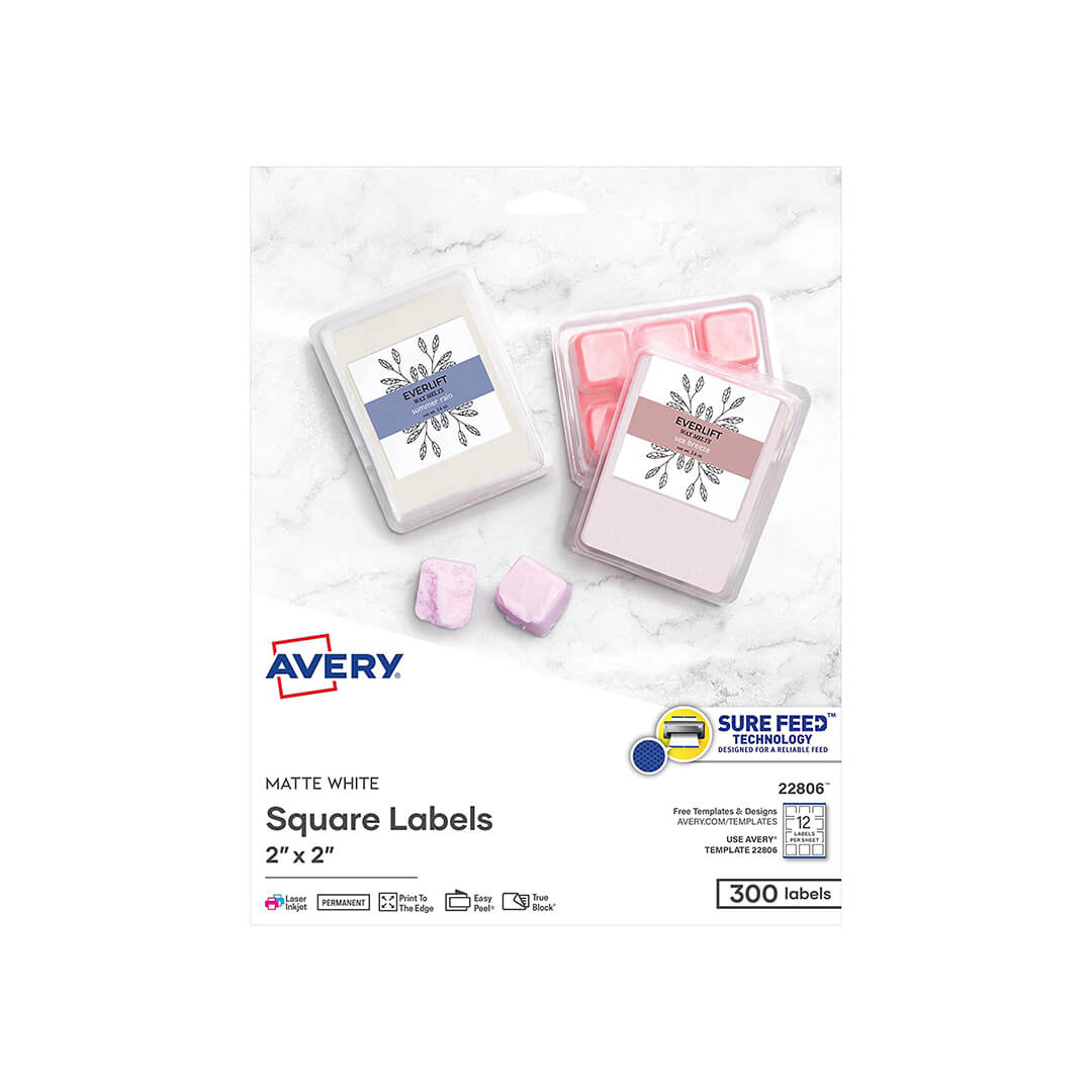 Avery Printable Blank Square Labels, 2″ x 2″, Matte White, 1500 Customizable Labels (22806)