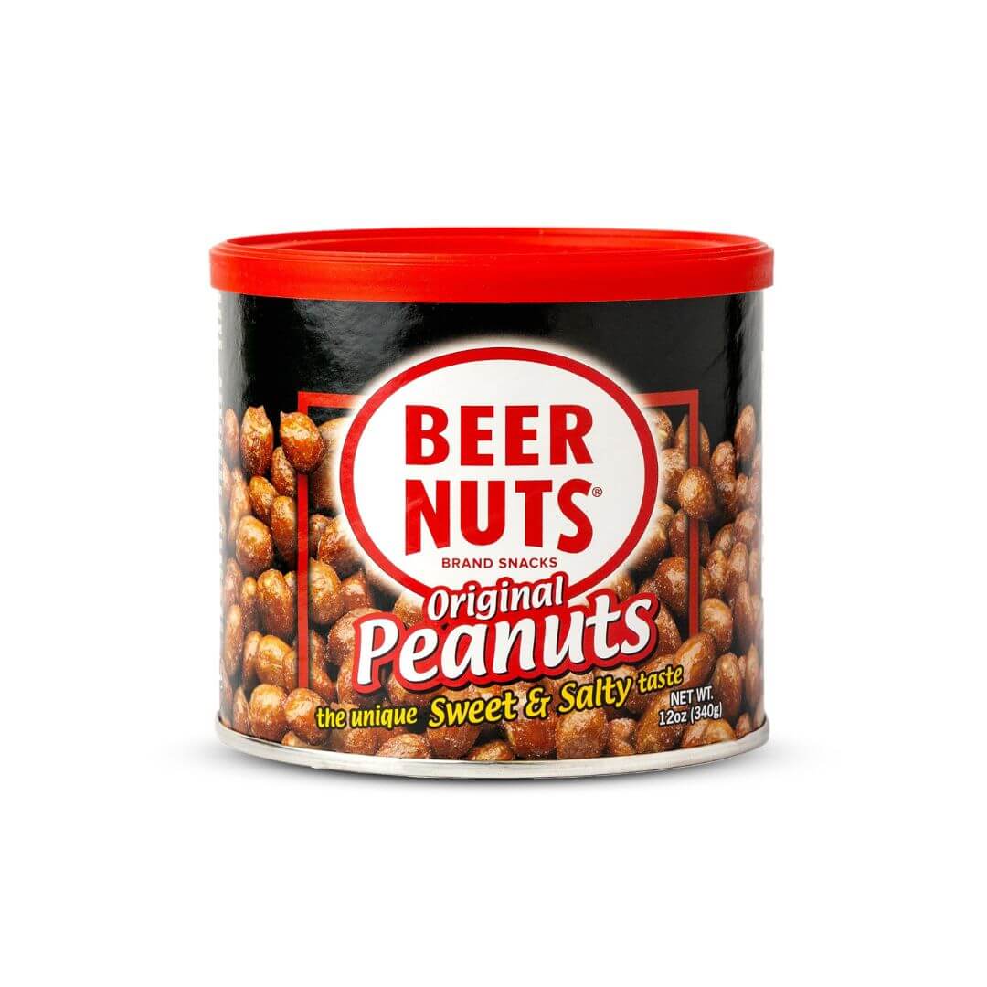 BEER NUTS Original Peanuts – Travel Size Sweet & Salty Bar Nuts – Gluten Free, Kosher, Low Sodium Peanut Snacks Made In The USA – 12oz Resealable Can (Pack of 1)