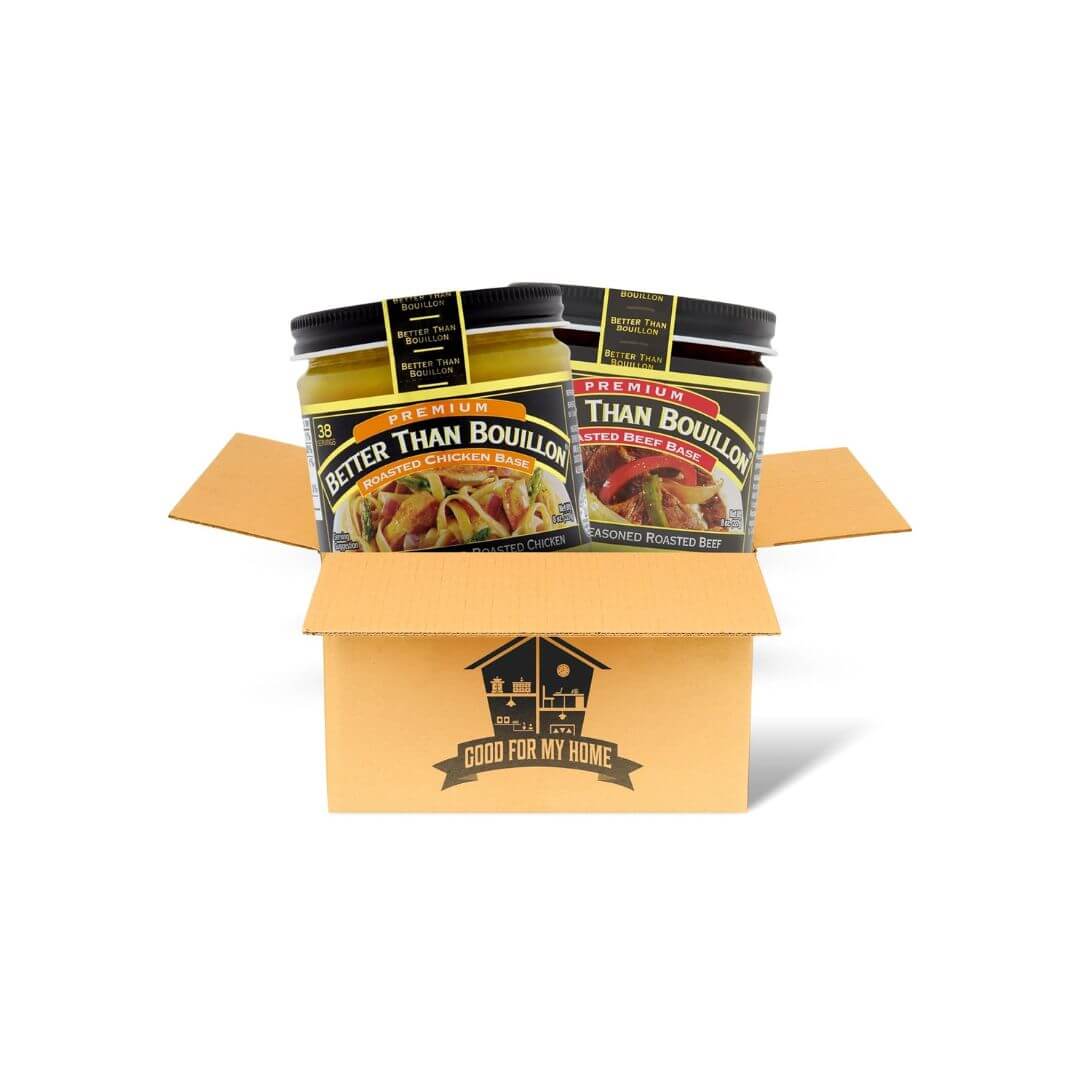 Bouillon Paste Variety Pack. Two-8 Oz Jars of Better than Bouillon in a Good For My Home Box! One Each: Better than Bouillon Chicken & Beef Bouillon. 38 Servings of Beef & Chicken Bouillon Paste!