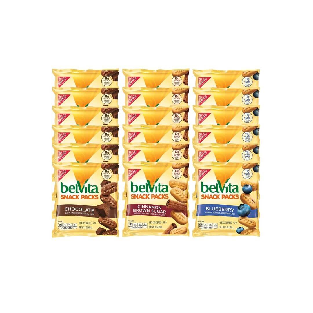 Breakfast Biscuits Snack Pack Bundle.18 Bel-vita Breakfast Biscuits Variety Pack in a Good For My Home Box. Six Each Bel-vita Bites: Chocolate Bel-vita,Cinnamon Brown Sugar & Blueberry Belvita