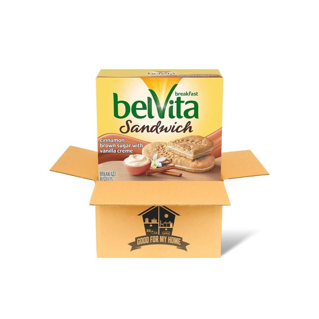 Breakfast Sandwich Biscuits Bundle. Three Bel-vita Breakfast Biscuits Cinnamon Brown Sugar with Vanilla Creme in a Good For My Home Box. Bel-vita Biscuits are Great On-The-Go Breakfast Sandwich Cookies!