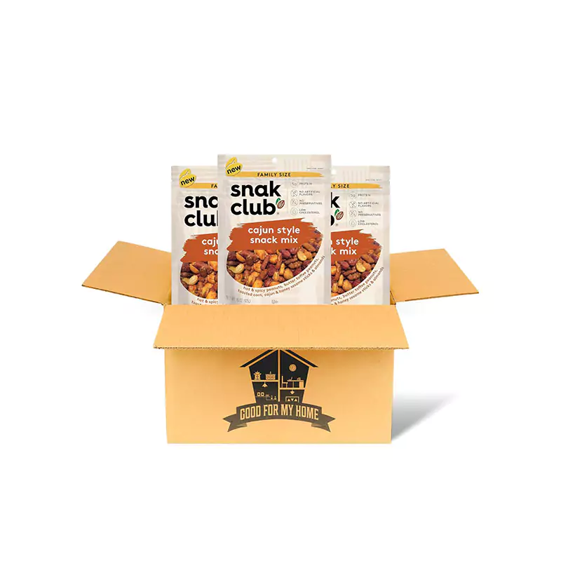 - Cajun Snack Mix Bundle. Includes Three- 15 oz Snack Klub Cajun Style Snack Mix Family Size Resealable Snack Packs in a Good For My Home Box. Sweet and Salty Snack with No Preservatives!