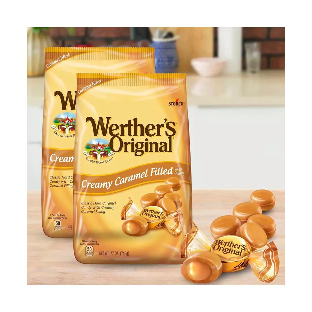 - Caramel Filled Bulk Hard Candy . Two-27 Oz Werthers Caramel Filled Candy Bags in a Good For My Home Box. Werthers Original Hard Candy with Creamy Caramel! Individually Wrapped Caramels for Sharing!