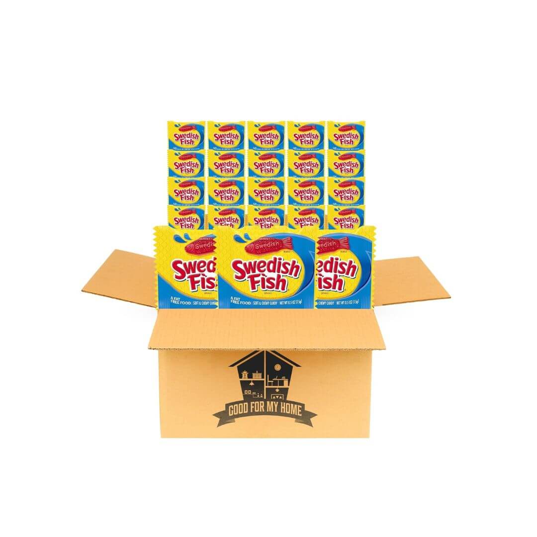 Chewy Candy Snacks Bundle. Includes One Pack (2 Lb) of Sweedish Fish Candy. Mini Swedish Fish, and Bulk Swedish Fish. For Office Snacks, Party candy, and More! Comes with a Good For My Home Box!