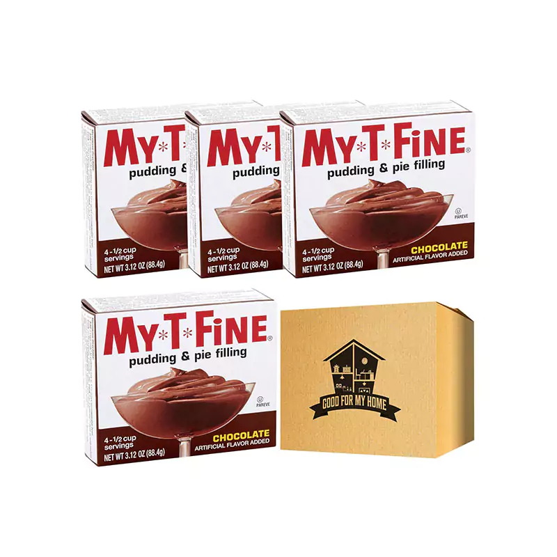 Chocolate Pudding Mix Bundle. Includes 4 Boxes of MyTFine Chocolate Pudding Mix in a Good For My Home Box. Each My T Fine Chocolate Pudding is Also Great for Chocolate Pies!