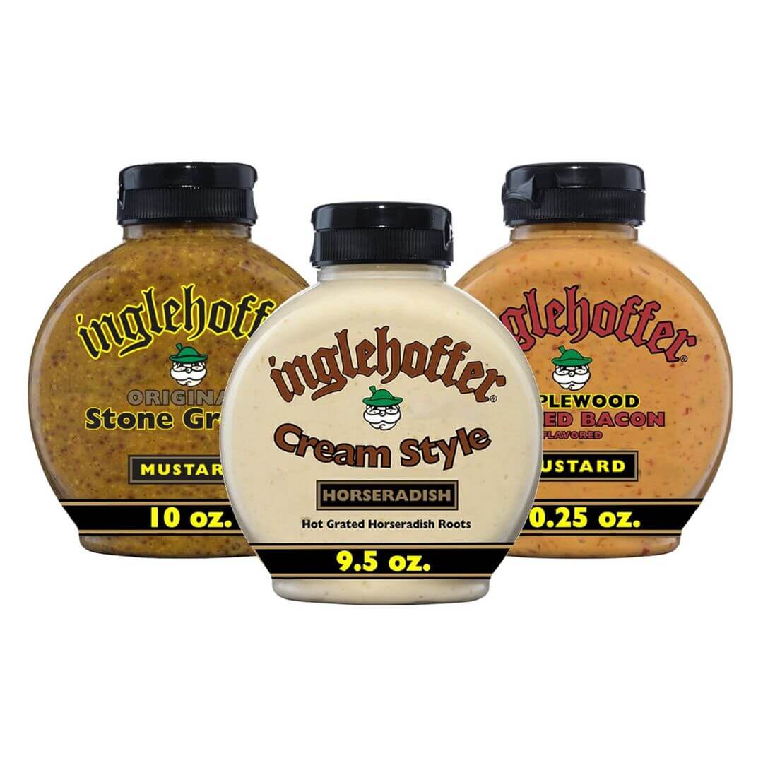 Inglehoffer Condiments Variety Pack (Stone Ground, Cream Style, Smoked Bacon, Pack of 3)