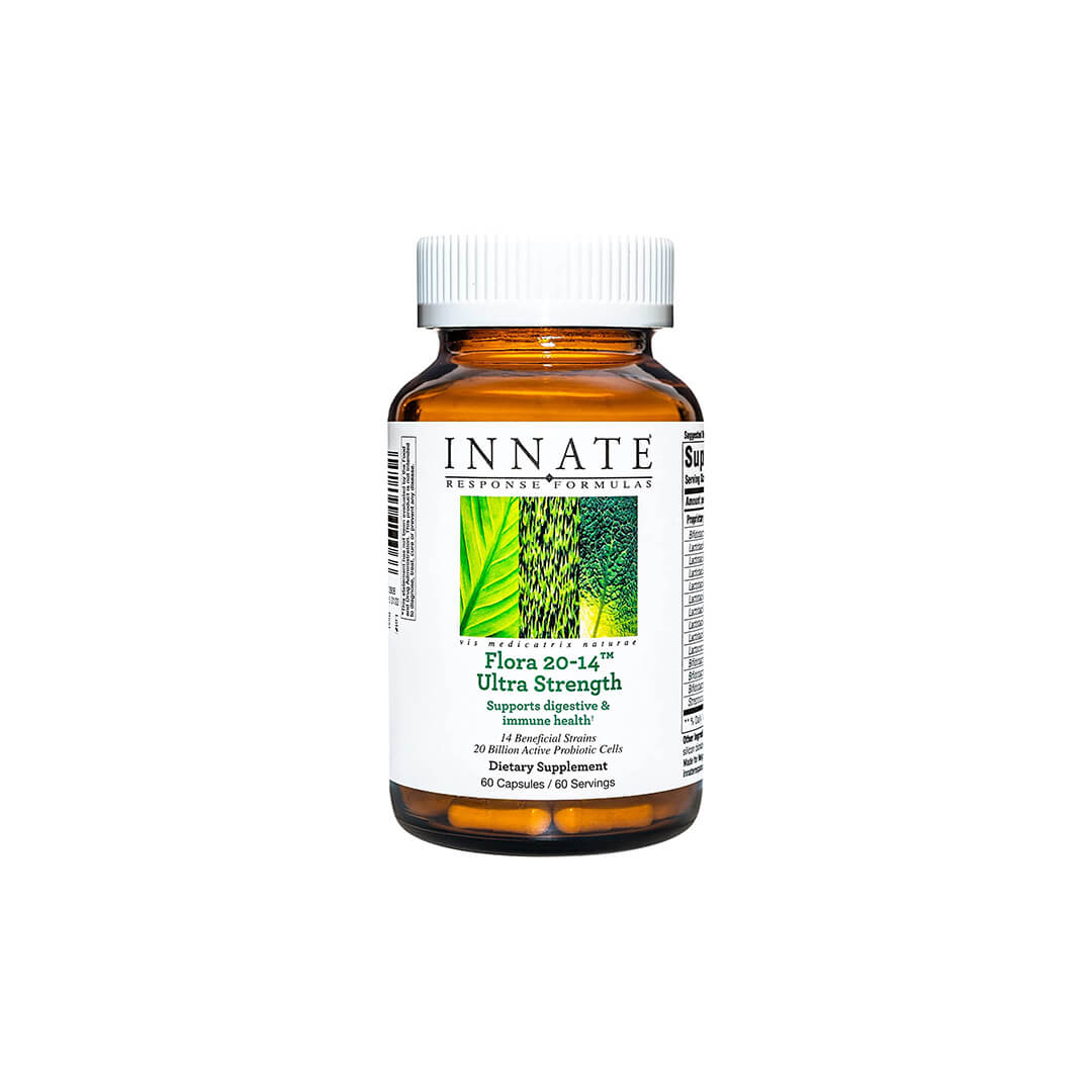 INNATE Response Formulas, Flora 20-14 Ultra Strength, Probiotic Supplement with 20 Billion CFU, 14 Probiotic Strains, Made Without Dairy or Soy, Gluten Free, Vegan, 60 Caps