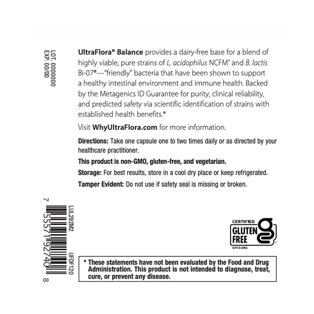 Metagenics UltraFlora Balance – Daily Probiotic for Immune Support and Digestive Health, Designed to Support a Healthy Intestinal Environment – 120 Count