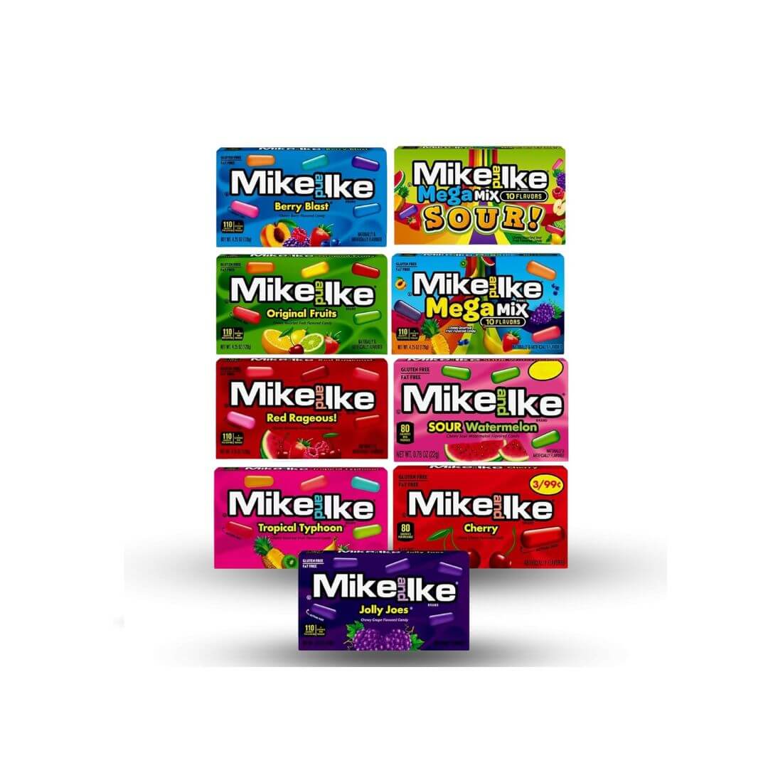 Movie Theater Candy Variety Pack. Includes 9 Flavors of Mike and Ike Candy Plus a Good For My Home Box. Sour Mike and Ike Candy. Fun & Chewy Candy. Assorted Candy Variety Pack for Everyone to Enjoy!