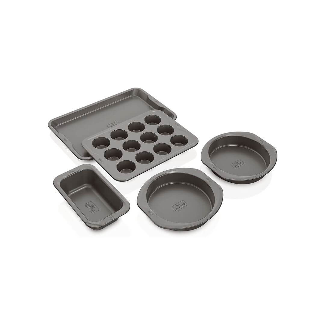 Ninja B35005 Foodi NeverStick Premium 5-Piece Bakeware Sheet Set, Oven Safe up to 500⁰F, with 11×17 Inch Baking Sheet, 5×9 Inch Loaf Pan, 12 Cup Muffin Pan, & (2) 9 Inch Round Cake Pans, Grey