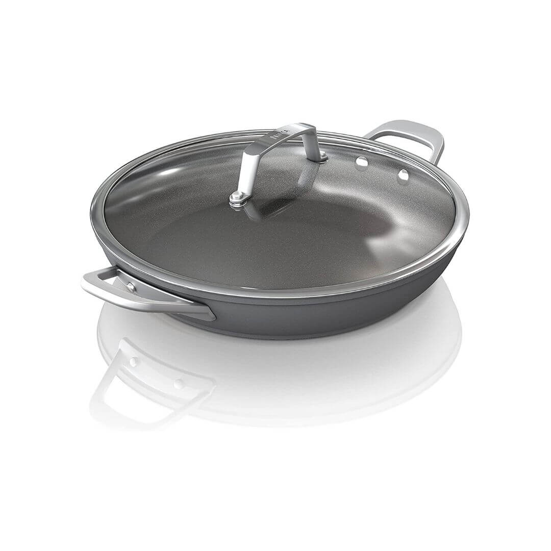 Ninja C30830 Foodi NeverStick Premium 12-Inch Everyday Pan with Glass Lid, Hard-Anodized, Nonstick, Durable & Oven Safe to 500°F, Slate Grey