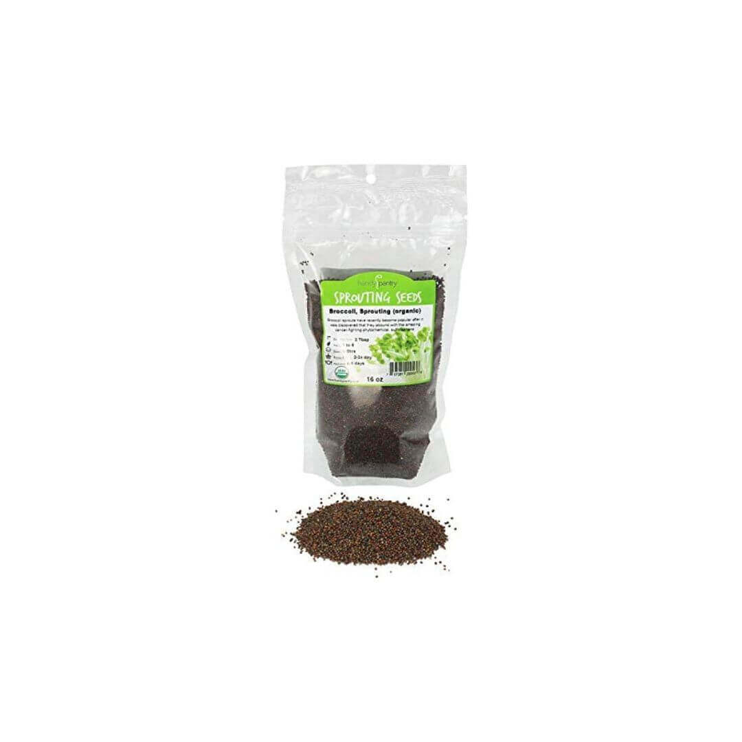 Organic Broccoli Sprouting Seeds By Handy Pantry | 1 Pound Resealable Bag| | Non-GMO Broccoli Sprouts Seeds, Contain Sulforaphane
