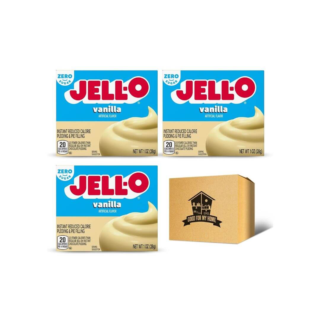 Pudding mix Bundle. Includes Three 1 Oz of Gelo Sugar Free Instant Vanilla Pudding Powder Mix. Fat Free, Low Calorie, and Zero Sugar Pudding Vanilla & Pie Filling Mix. Plus a Good For My Home Box!