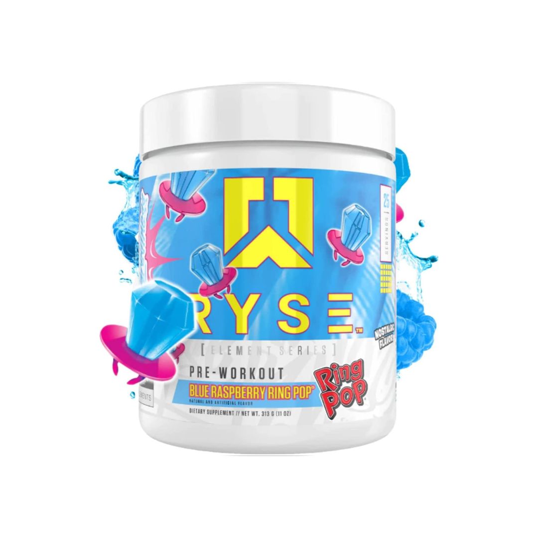Ryse Element Series Pre-Workout | Everyday Pre-Workout | Beta Alanine, NO3-T Nitrates | 200mg Caffeine | 25 Servings (Blue Raspberry Ring Pop)