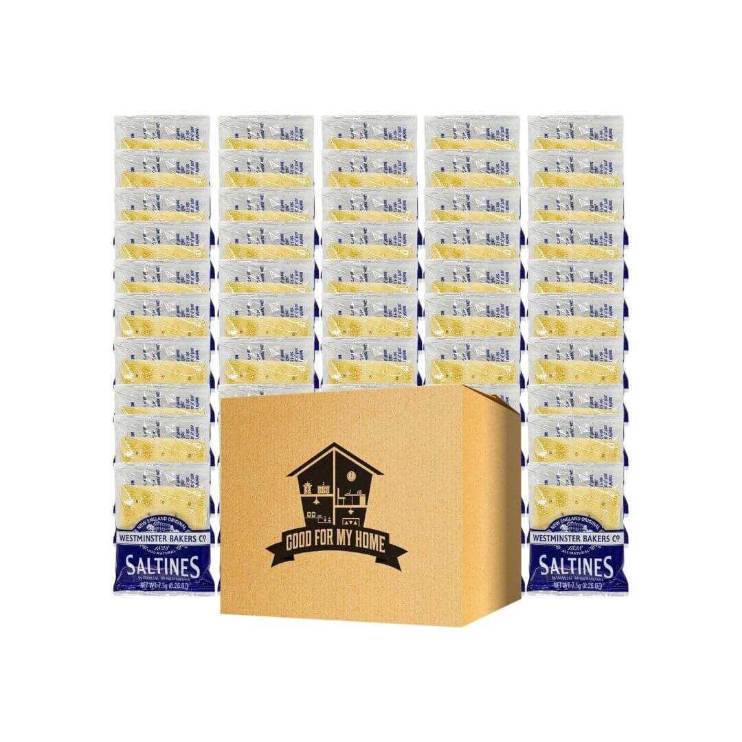 Saltine Crackers Bundle, Includes Fifty 0.26 Oz of West Minster Saltine Crackers England Style. All Natural Saltines Crackers Snack Packs. Soup and Tea Crackers. Comes with a Good For My Home Box!