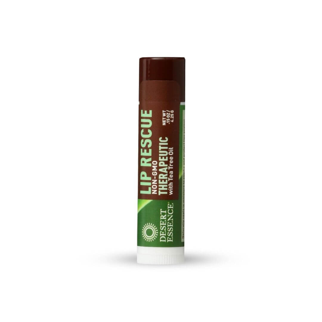 Tea Tree Oil Lip Balm Bundle. Includes Two-0.35 Oz Desserts Essence Tea Tree Oil Lip Rescue in a Good For My Home Box. Desserts Essence is a Gluten Free, Cruelty Free Tea Tree Oil Vegan Lip Balm!