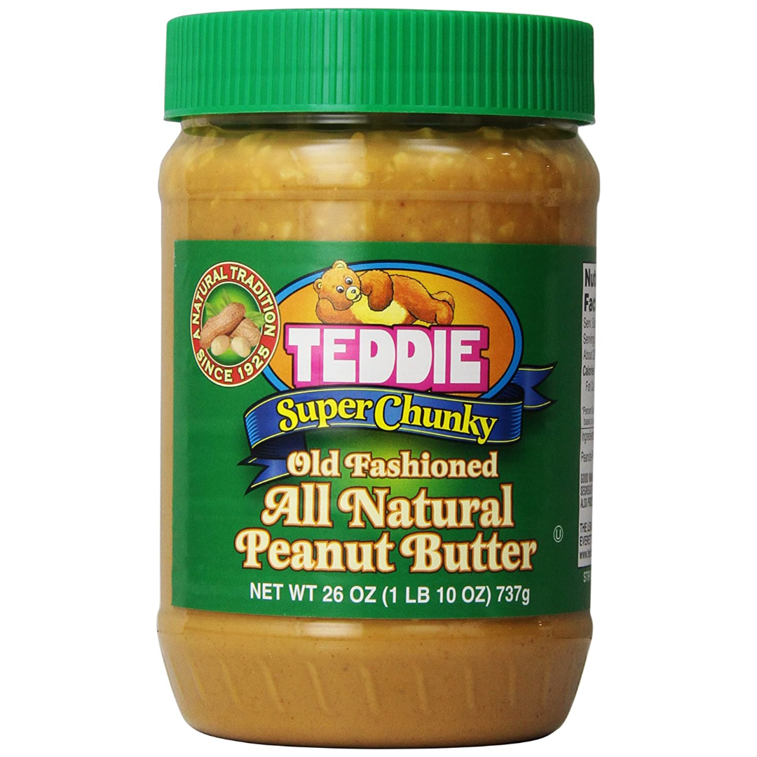Teddie All Natural Peanut Butter, Super Chunky, Gluten Free & Vegan, 26 Ounce Plastic Jar (Super Chunky, 26 Ounce (Pack of 1))