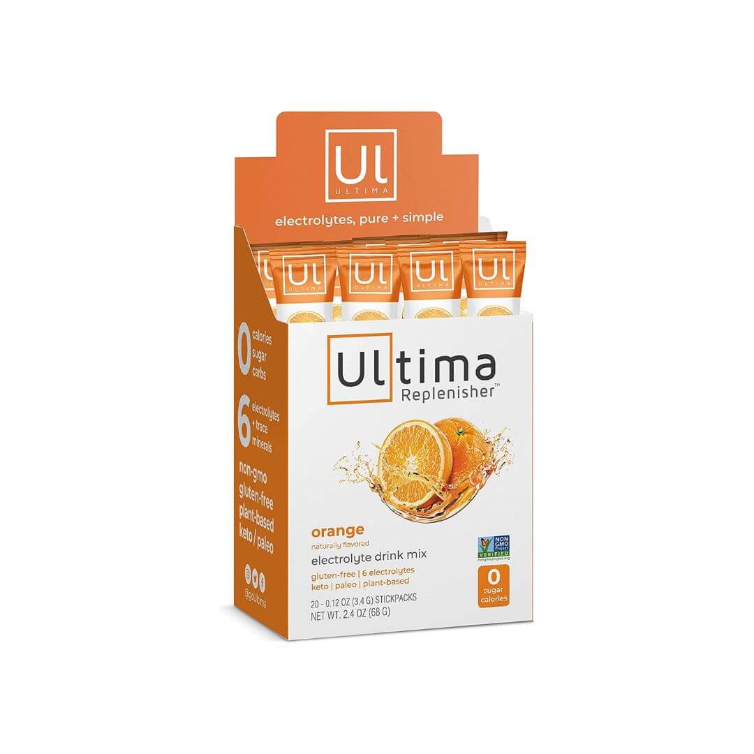 Ultima Replenisher Electrolyte Hydration Powder, Orange, 20 Count Stickpacks – Sugar Free, 0 Calories, 0 Carbs – Gluten-Free, Keto, Non-GMO with Magnesium, Potassium, Calcium, 2.4 Ounce (Pack of 1)
