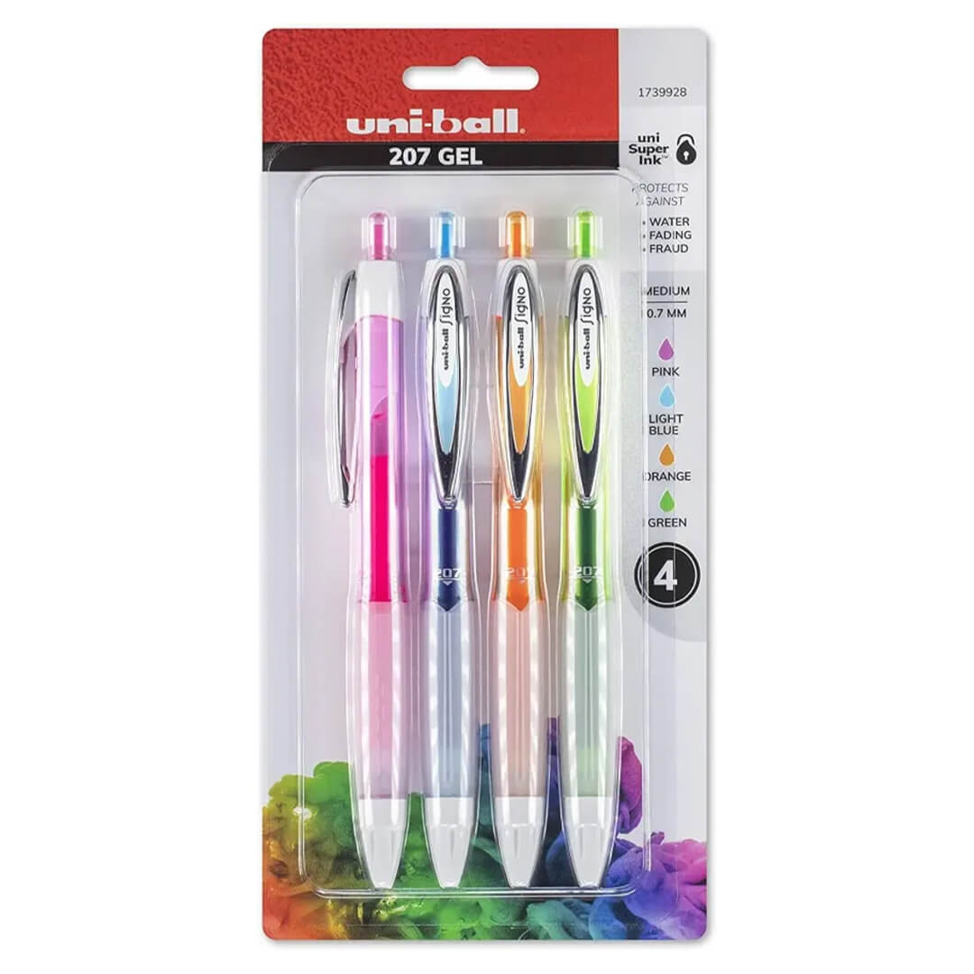 uni-ball 1739928 uni-ball 207 Colors Retractable Gel Pens, Medium Point (0.7mm), Assorted, 4 Count