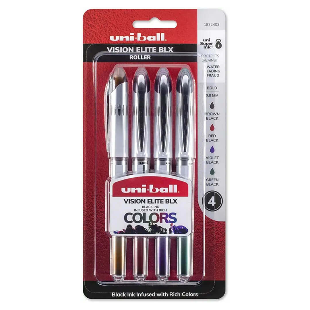 uni-ball Vision Elite BLX Infusion Rollerball Pens Bold Point, 0.8mm, Assorted, 4 Pack