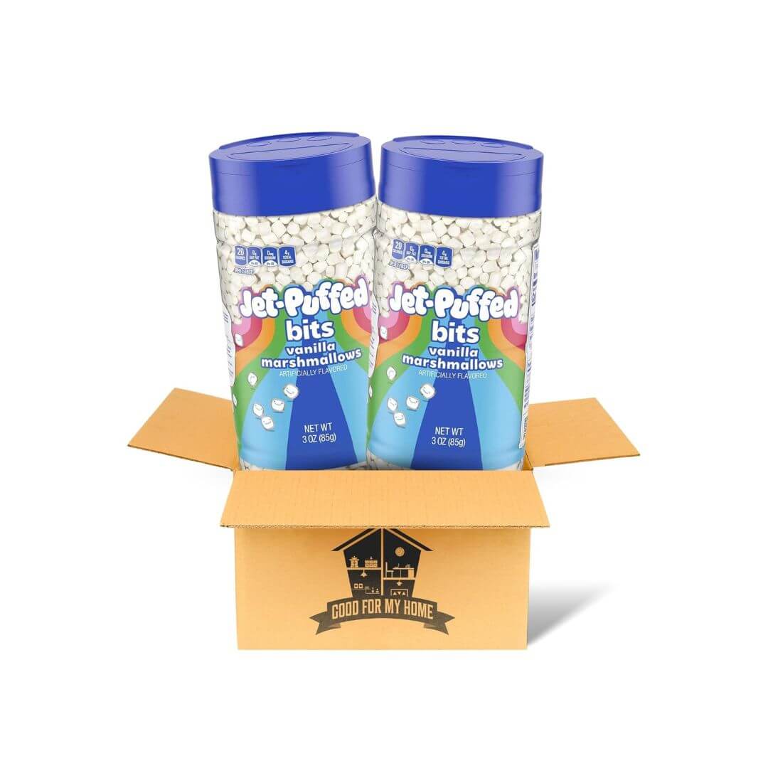 Vanilla Marshmallow Puffed Bundle. Includes Two 3 Oz each of Vanilla Flavored Marshmallow Bits. For Hot Cocoa Toppings, Cookies, Ice Cream Toppings, and More! Comes with a Good For My Home Box!