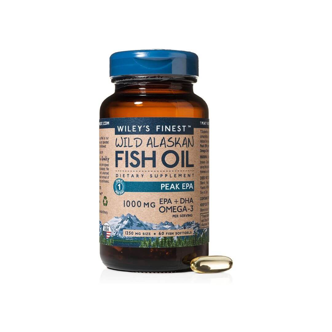Wiley’s Finest Wild Alaskan Fish Oil Peak EPA – Triple Strength Peak EPA and DHA – 1000mg Omega-3s, SQF-Certified – 60 Softgels (60 Servings)