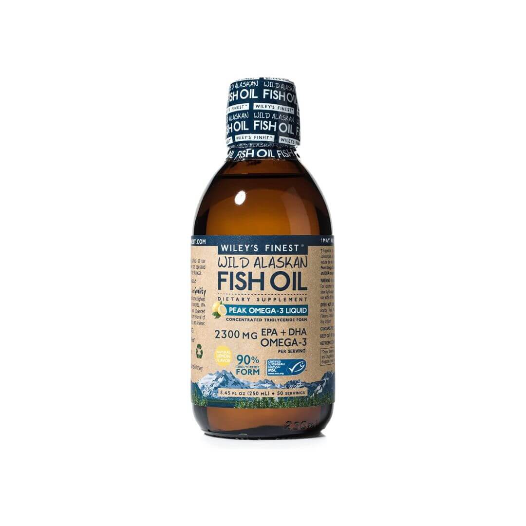 Wiley’s Finest Wild Alaskan Fish Oil Peak Omega-3 Liquid Supplement – 2300mg EPA and DHA Omega-3s – Lemon Flavor – 8.45 Oz (50 Servings)