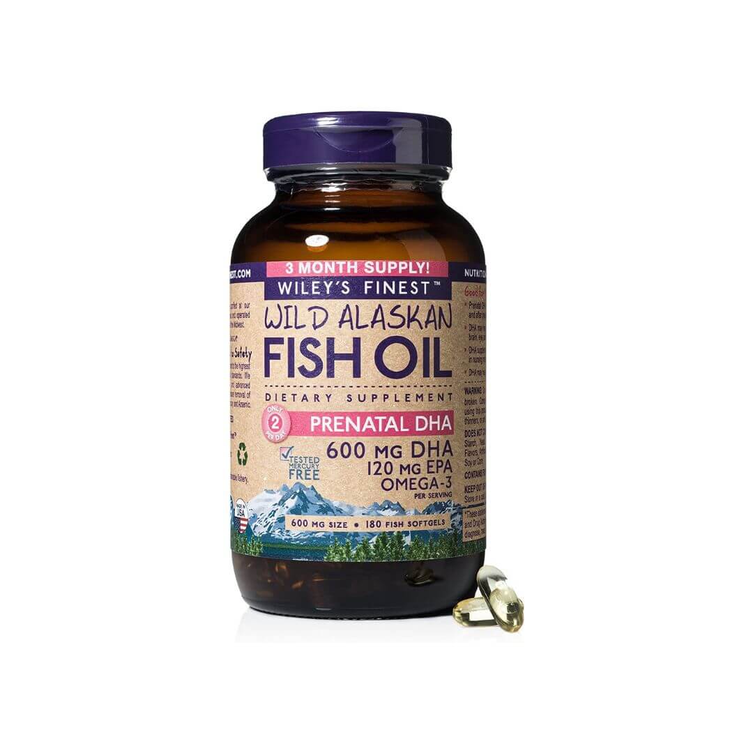 Wiley’s Finest Wild Alaskan Fish Oil Prenatal DHA – 720mg EPA and DHA Omega-3s for Pregnant Women and Nursing Mothers – 180 Softgels (90 Prenatal Vitamin Servings)