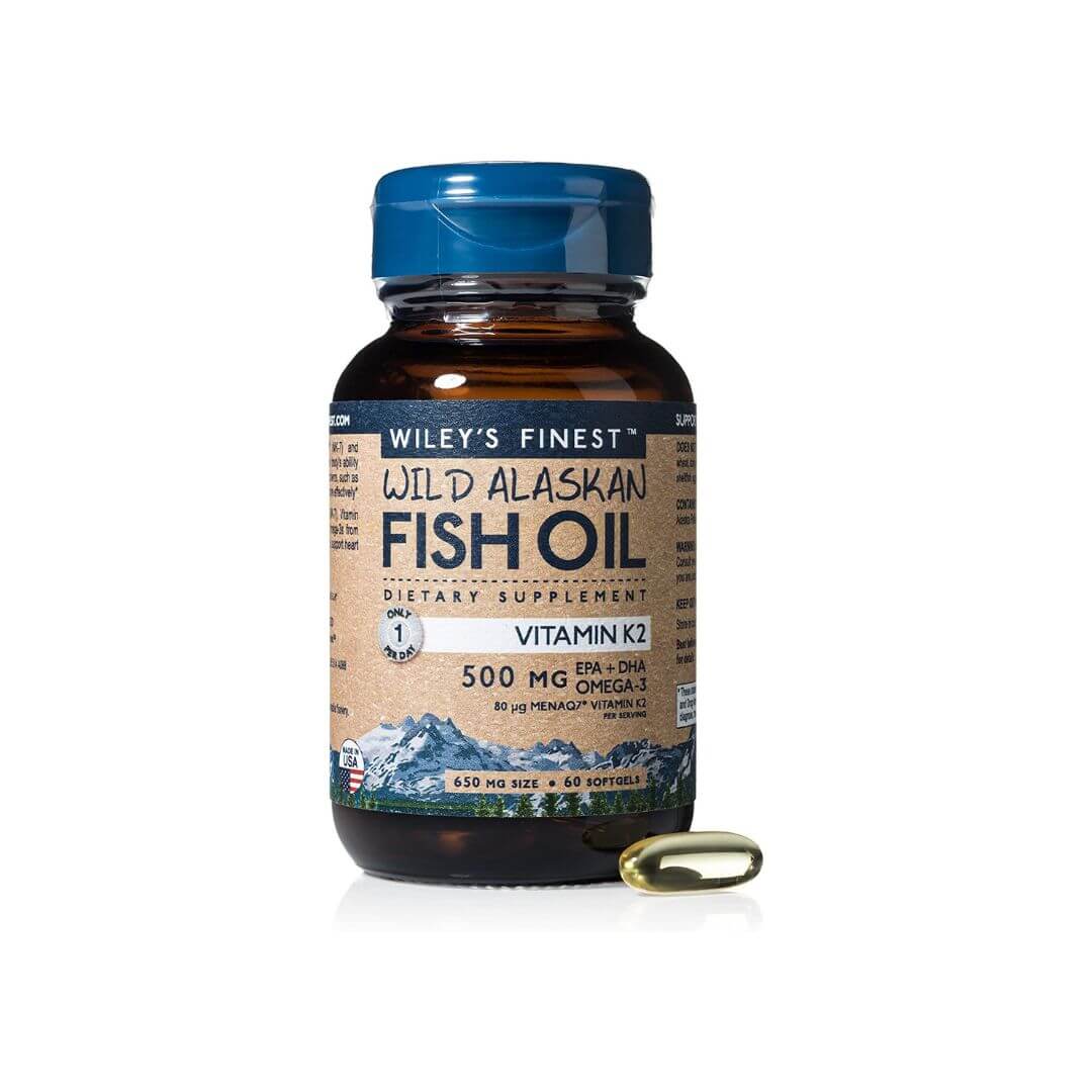 Wiley’s Finest Wild Alaskan Fish Oil Vitamin K2 Softgels – 500mg of EPA and DHA Omega-3s for Bone and Heart Health Support – 60 Softgels (60 Servings)
