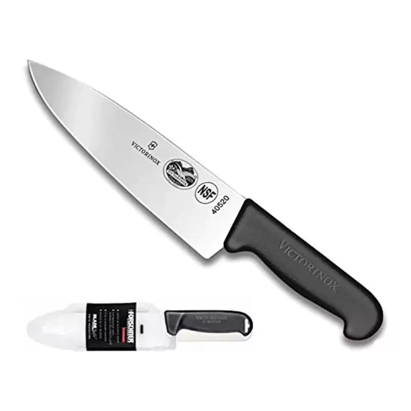 Victorinox Swiss army, Fibrox Straight Edge Chef’s Knife, 8-Inch, Black, With Victorinox Cutlery BladeSafe for 8-Inch to 10-Inch Knife Blades. Combo pack