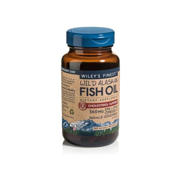 Wiley’s Finest Wild Alaskan Fish Oil Cholesterol Support – Heart Health Supplement for Men and Women – 530mg Omega-3s – 90 Softgels (45 Servings)
