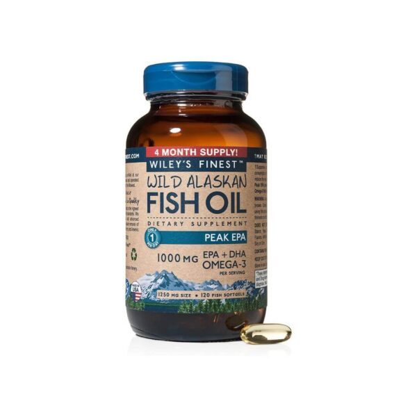 Wiley’s Finest Wild Alaskan Fish Oil Peak EPA – Triple Strength Peak EPA and DHA – 1000mg Omega-3s, SQF-Certified – 120 Softgels (120 Servings)